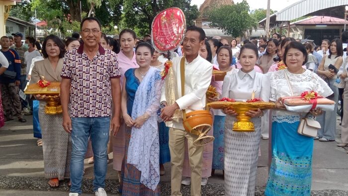 วัดแทบแตก แห่ร่วมงานบวชลูกชาย รองนายก อบต. โปรยทานกว่า1แสน
