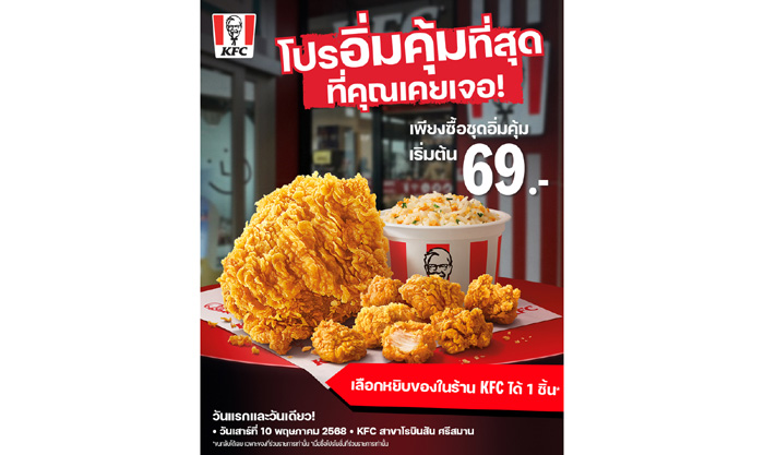 มีใครคุ้มกว่านี้อีกไหม? ‘โปรอิ่มคุ้มที่สุดที่คุณเคยเจอ’ อยากได้อะไร ขนกลับไปเลยแบบฟรีๆ!!! แคมเปญสุดปั่นจาก KFC ประเทศไทย 10 พฤษภาคมนี้ วันเดียว เฉพาะที่ KFC โรบินสัน ศรีสมาน