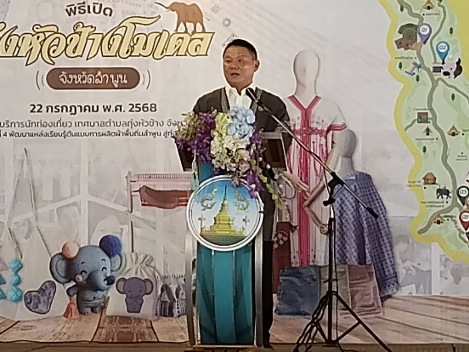 วันที่ 22 กรกฎาคม 2568 ที่ศูนย์บริการนักท่องเที่ยวเทศบาลตำบลทุ่งหัวช้าง อำเภอทุ่งหัวช้าง จังหวัดลำพูน นายวิวัฒน์ อินทร์ไทยวงศ์ ผู้ว่าราชการจังหวัดลำพูน เปิดพื้นที่เรียนรู้ การผลิตผ้าพื้นถิ่นลำพูน “ทุ่งหัวช้างโมเดล” ภายใต้โครงการส่งเสริมกระบวนการพัฒนาผ้าลำพูน ประจำปีงบประมาณ พ.ศ. 2568 เพื่อ พัฒนาแหล่งเรียนรู้ต้นแบบการผลิตผ้าพื้นถิ่นลำพูน สู่ “ทุ่งหัวช้างโมเดล”