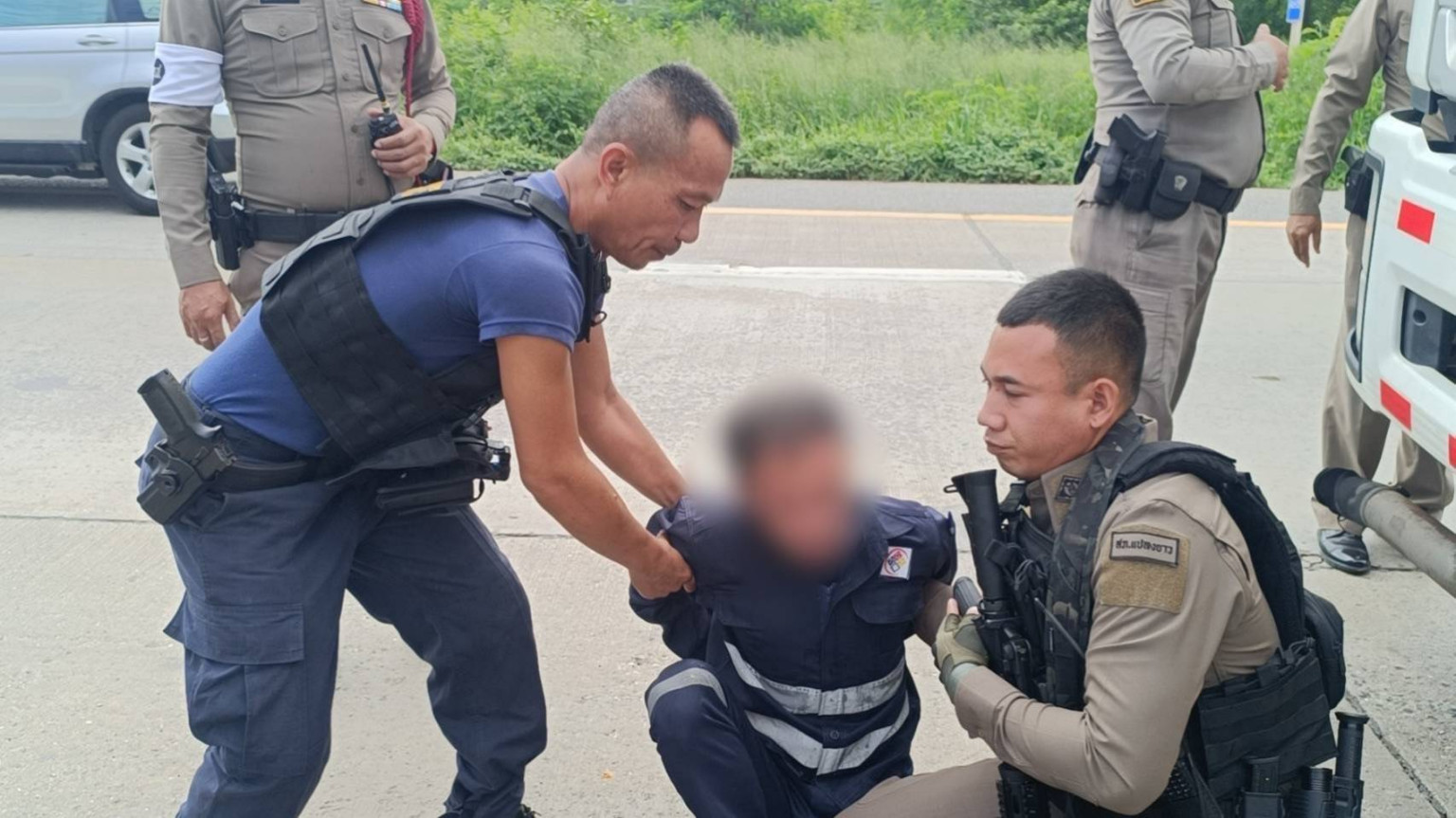 เมื่อเวลา 09.00 น. วันที่ 16 มิถุนายน 2568 ที่ สภ.ห้วยโป่ง จ.ระยอง พ.ต.อ.ตรงศักดิ์ เพชรหาญ ผกก.สภ.ห้วยโป่ง พร้อมด้วยพ.ต.ท.เจริญ ชัยชะนะ รองผกก.สส.สภ.ห้วยโป่ง ชุดสืบสวน และตร.ชุดป้องกันและปราบปราม(สายตรวจ)สภ.ห้วยโป่ง นำตัว นายธนิต อายุ 38 ปี ผู้ต้องหาตามหมายจับศาลจังหวัดระยอง คดีฆ่าผู้อื่นโดยเจตนา พร้อมข้อหามีอาวุธปืนและเครื่องกระสุนโดยไม่ได้รับอนุญาต และพาอาวุธไปในที่สาธารณะ เข้าสอบปากคำอย่างละเอียด พร้อมของกลางปืนสั้นกึ่งอัตโนมัติไม่มีทะเบียน 1 กระบอก และกระสุนขนาด .32 จำนวน 13 นัด หลังการสอบสวนนานกว่า 3 ชั่วโมง ตำรวจได้จัดอาหารให้ผู้ต้องหาเป็นข้าวผัดกะเพราไข่ดาว ซึ่งเจ้าตัวก็นั่งกินด้วยสีหน้าเรียบเฉย ไม่แสดงอาการเครียดหรือสลดกับเหตุการณ์ที่เกิดขึ้นแม้แต่น้อย