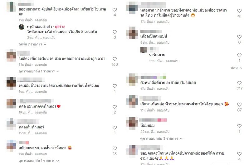 ขณะที่มีคนสงสัย เข้ามาถามว่า “ขออนุญาตถามค่ะปกติเรียนรด.ต้องตัดผมเกรียนไม่ใช่เหรอคะ” ซึ่ง ครูนุ๊ก ก็มาตอบว่า “ให้ตัดรองทรงได้ ด้านบนยาวไม่เกิน 5 เซนฯครับ”
