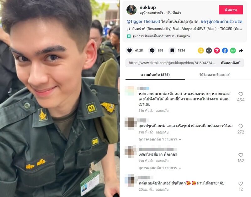 เรียกว่าคอมเมนต์รัว แห่ชมความหล่อ ทิกเกอร์ ทั้งเซอร์ไพรส์ไม่คิดว่าจะมาเรียน รด. ด้วย อาทิ