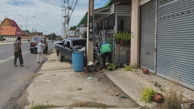 ผู้ใหญ่บ้าน ขับกระบะเสียหลักพุ่งอัดเสาไฟฟ้าหน้าร้านเสริมสวยพังยับ บาดเจ็บ 3 ราย เจ้าของร้าน เผย ได้ยินเสียงดังโครม ออกมาดูเห็นเลือดเต็มหน้าบ้าน