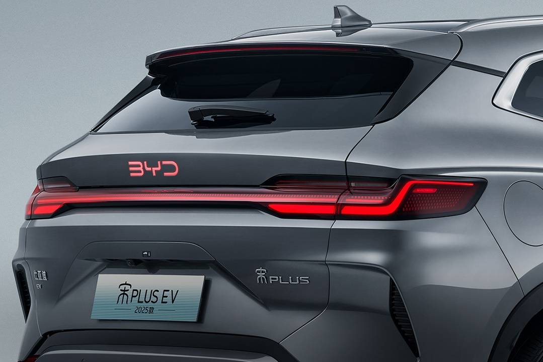 ไฟท้าย LED ที่วางแบบเต็มท้ายรถ ติดตั้งดิฟฟิวเซอร์มาให้พร้อมไฟถอยหลังใต้กันชนและไฟทับทิมซ้าย-ขวา มีคำว่า BํYD เรืองแสงสีแดง บนฝาท้ายรถ หลังคารถพาโนรามิกซันรูฟ ล้อสีทูโทนดีไซน์ใหม่ ขนาด 19 นิ้ว พร้อมยาง 235/50R19 ตัวรถมาในร่างเอสยูวีไซซ์ใหญ่ D-Segment มิติตัวรถต่างจากเวอร์ชัน DM-i Plug In Hybrid เล็กน้อย ตั้งแต่