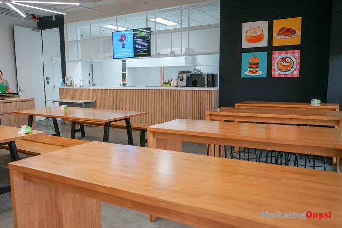 ห้องอาหาร ที่ออกแบบให้ความรู้สึกเหมือนโรงอาหารที่โรงเรียน