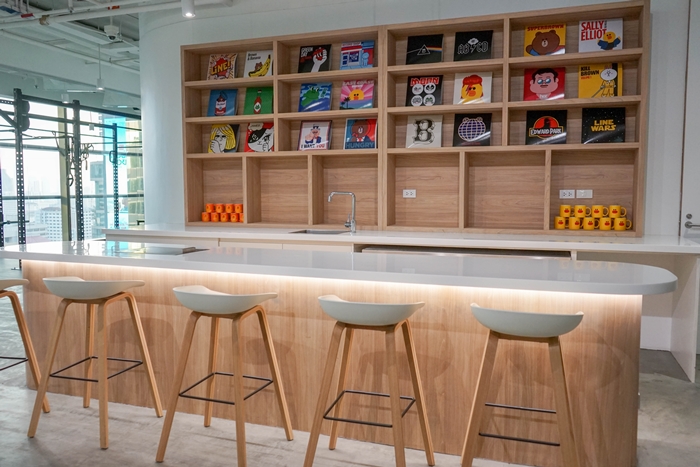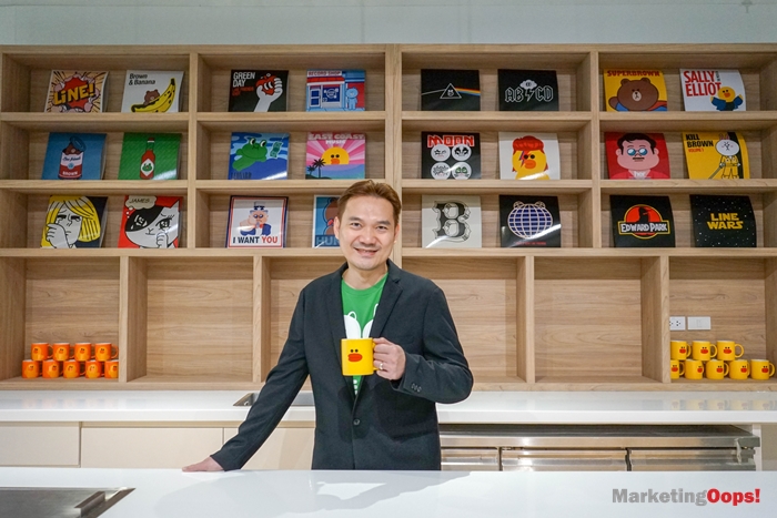สิ่งที่สื่อถึงความเป็นไทย คุณเนตรยกตัวอย่างง่ายๆ ก็คือ เดินเข้ามาในออฟฟิศเจอ ‘หมีบราวน์’ ที่ทำท่าทางสวัสดี โดยท่ายกมือไหว้มันจะบ่งบอกว่านี่คือวิธีการตอนรับแบบไทย ซึ่งปกติบราวน์จะนั่งธรรมดา ถัดมาอีกนิดก็จะเจอบราวน์ โคนี่ และช็อคโก้ ใส่ชุดไทย นั่นคือสิ่งที่เราจะบอกว่า ที่นี่คือ LINE Thailand ไม่ใช่ที่ญี่ปุ่น แต่ที่สำคัญที่สุดคือ กิมมิคที่เราจะสื่อสาร คือ LINE เป็น Localize และพยายามที่จะทำอะไรที่เข้าถึงผู้บริโภคคนไทยให้มากที่สุด แต่ก็จะมีบางห้องที่เราทำให้มีอารมณ์ของญี่ปุ่น เช่น ห้องประชุมบางห้องที่เราทำแบบสไตล์ญี่ปุ่น เพื่อให้รับรู้ได้บ้างว่าเราคือบริษัทญี่ปุ่น