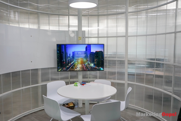 นอกจากนี้ ในแต่ละแผนกก็มีดีไซน์การออกแบบที่แตกต่างกันไป มีสัญลักษณ์ของแต่ละบริการปรากฏอยู่ เช่น ถ้าเดินไปตรงส่วนของ LINE TV ก็จะมี TV จอใหญ่ มีป้ายเหมือนโรงหนัง ว่า Now Showing เดินมาปุ๊ปก็จะรู้ว่านี่คือแผนก LINE TV ส่วน LINE Games โต๊ะจะมีความโค้งเว้าให้ดูมีความ Creativity สนุกสนาน ขณะที่ LINE Man สัญลักษณ์ คือ สีเขียวและมอเตอร์ไซค์เวสป้า เราก็นำมอเตอร์ไซค์มาตั้ง ส่วน LINE Sticker เราจะมีมุมสำหรับ Creator จะมีคาแรกเตอร์ต่างๆ เช่น ติดลม เจี๊ยบ หนูหิ่น และจะมีบางมุมที่ให้รู้ว่าเป็นเซอร์วิสของเรา