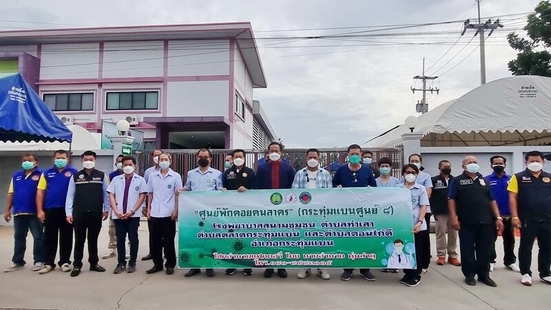 เมื่อเวลา 08.00 น. วันที่ 16 ก.ค.2564 นายวีระศักดิ์ วิจิตร์แสงศรี ผู้ว่าราชการจังหวัดสมุทรสาคร มอบหมายให้ นายบรรพต จันทรวงษ์ นายอำเภอกระทุ่มแบน พร้อมด้วย นพ.ธรรมวิทย์ เกื้อกูลเกียรติ ผู้อำนวยการโรงพยาบาลกระทุ่มแบน, นายอำนวย หุ่นลำภู ผู้ประกอบการอาคารโรงงานโชคอำนวยแฟคทอรี่, นายกองค์กรปกครองส่วนท้องถิ่น, กำนัน, ผู้ใหญ่บ้าน, ผู้นำท้องถิ่น, สาธารณสุขอำเภอ, เจ้าหน้าที่โรงพยาบาลส่งเสริมสุขภาพตำบล (รพ.สต.) และ อสม. ของ 3 ตำบล คือ ต.ตลาดกระทุ่มแบน ต.ท่าเสา และ ต.ดอนไก่ดี