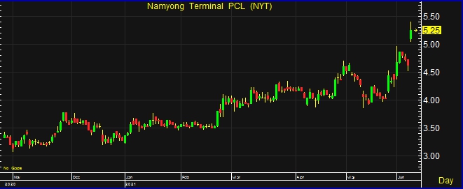 ทั้งนี้ราคาหุ้น NYT ปรับตัวขึ้นสูงสุดในรอบกว่า 2 ปี นับตั้งแต่ราคาหุ้นอยู่ที่ระดับ 5.25 บาท เมื่อวันที่ 26 ก.พ.2562 หลังศาลอุทธรณ์ได้พิพากษาให้กรุงเทพมหานคร (กทม.) ชำระค่าภาระทั้ง 3 รายการ ได้แก่ ค่ายกขนส่งสินค้าและค่าภาระฝากสินค้า และค่าเคลื่อนย้ายรถดับเพลิงและรถบรรทุกน้ำออกจากท่าเทียบเรือของบริษัทฯ และภาษีมูลค่าเพิ่มรวม 1.04 พันล้านบาท พร้อมดอกเบี้ยอัตราร้อยละ 7.5 ต่อปี ในเงินต้น 972.72 ล้านบาท นับถัดจากวันฟ้อง (26 ก.ค.2560) เป็นต้นไปจนกว่าจะชำระเสร็จแก่บริษัทฯ