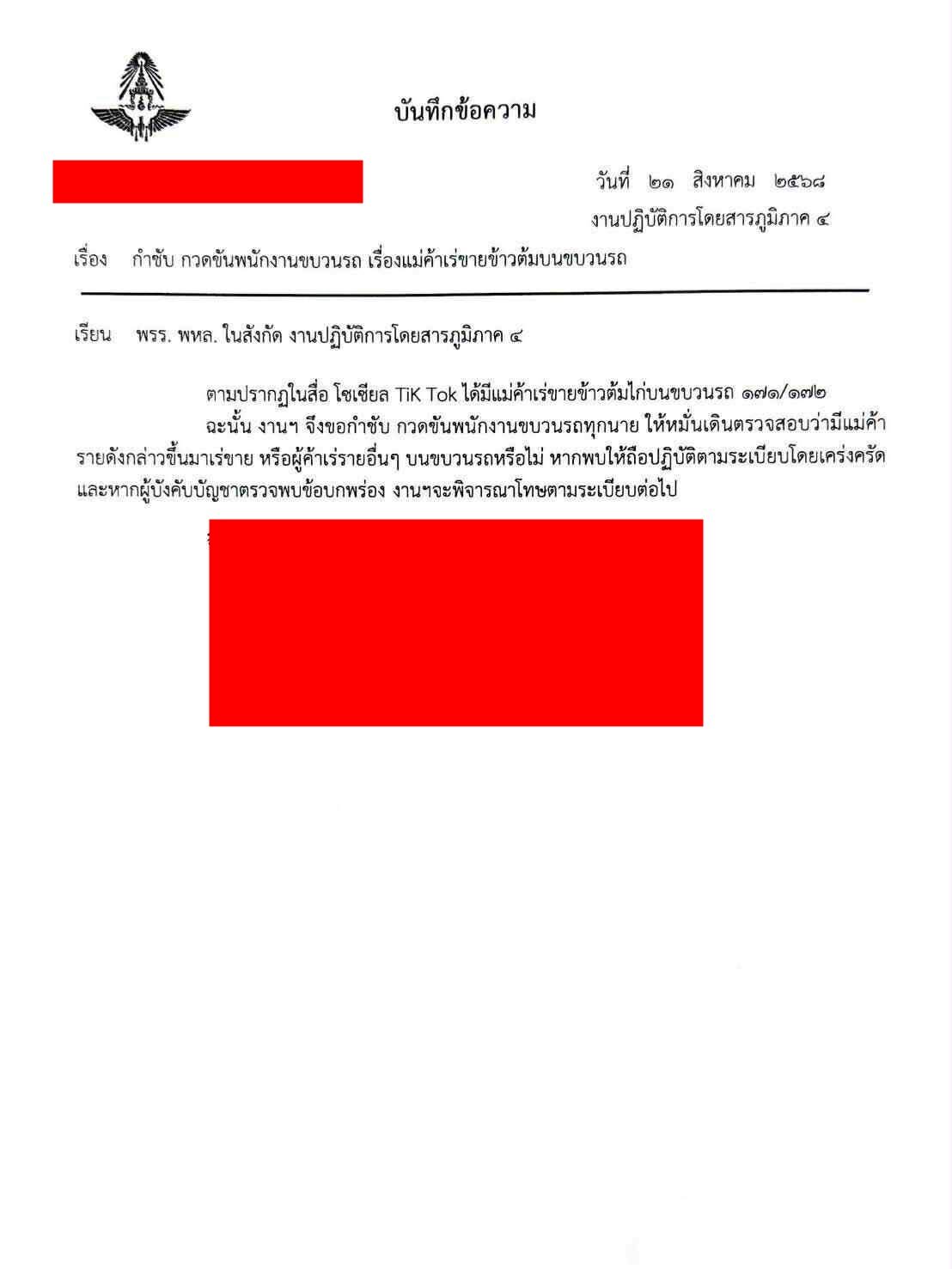กลายเป็นประเด็นดราม่าบนขบวนรถไฟสายใต้ เมื่อมีหนังสือจากการรถไฟแห่งประเทศไทย เรื่อง กำชับ กวดขันพนักงานบนขบวนรถ เรื่องแม่ค้าเร่ขายข้าวต้มบนขบวนรถ ความว่า ตามปรากฎใน TilTok มีแม่ค้าเร่ขายข้าวต้มไก่ บนขบวนรถ 171/172 จึงขอกำชับกวดขันพนักงานขบวนรถทุกนาย ให้หมั่นเดินตรวจสอบว่ามีแม่ค้ารายดังกล่าวขึ้นมาเร่ขาย หรือ ผู้ค้าเร่รายอื่นๆบนขบวนรถหรือไม่ หากพบให้ปฏิบัติตามระเบียบโดยเคร่งครัด และ หากผู้บังคับบัญชาตรวจพบข้อบกพร่อง จะพิจารณาโทษตามระเบียบต่อไป