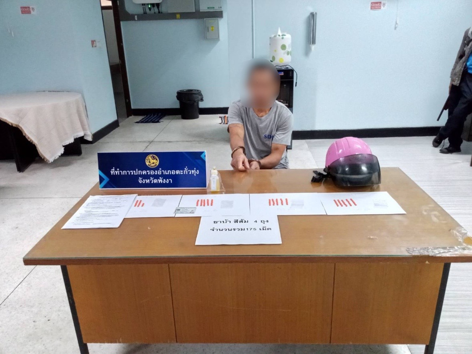 ขณะที่กำลังออกลาดตระเวนเพื่อรักษาความสงบเรียบร้อยและป้องกันการเกิดอาชญากรรมในเขตพื้นที่หมู่ที่ 5 บ้านเขาเปาะ สามารถจับกุมนายดำ(นามสมมุติ) พร้อมของกลางยาบ้า จำนวน 175 เม็ด โดยตั้งข้อกล่าวหาว่ามียาเสพติดให้โทษประเภทที่ 1 เมทแอมเฟตามีน (ยาบ้า) ไว้ในครอบครอง โดยไม่ได้รับอนุญาต เสพยาเสพติดให้โทษประเภทที่ 1 เมทแอมเฟตามีน (ยาบ้า) โดยไม่ได้รับอนุญาต และเป็นผู้ขับขี่ขณะมีสารเสพติดให้โทษประเภท 1 เมทแอมเฟตามีน (ยาบ้า) อยู่ในร่างกายโดยผิดกฎหมาย นำส่งพนักงานสอบสวนสภ.ตะกั่วทุ่งดำเนินการต่อไป