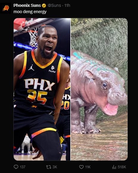 เรียกว่าร้อนแรงอย่างต่อเนื่องสำหรับน้อง ‘หมูเด้ง’ ลูกฮิปโปโปเตมัส เพศเมียวัย 2 เดือน ซูเปอร์สตาร์แห่งสวนสัตว์เปิดเขาเขียว จังหวัดชลบุรี ที่ล่าสุดฟีเวอร์ไปไกลถึงวงการกีฬา โดยมีหลายทีมดังระดับโลกพร้อมใจเอาภาพหมูเด้งไปตัดต่อทำเป็นมีม ตลอดหลายวันที่ผ่านมา