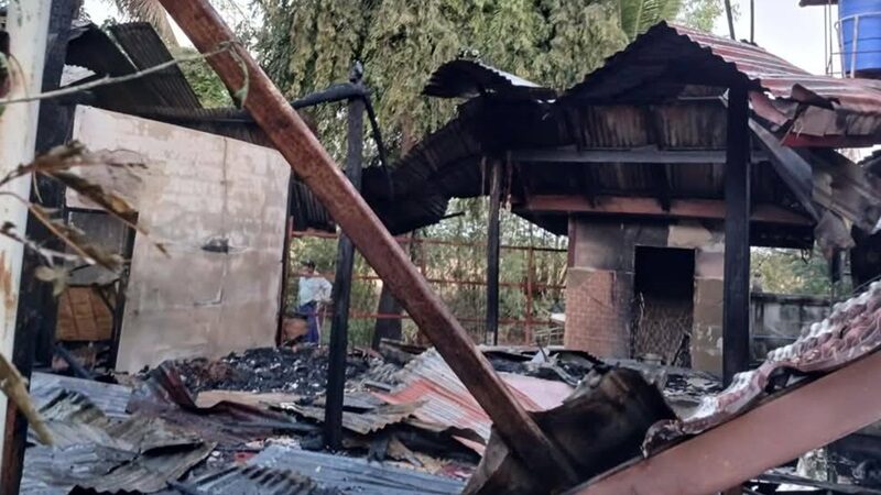 ไฟคลอกตายคู่ ชาวบ้านเชื่องูเขียวผัว-เมียหนีไม่ทันเพลิงเผาโรงเก็บของในวัด รถกระบะวอดทั้งคัน