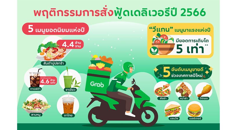 5 เมนูที่คนไทยสั่ง Grab มากินมากที่สุด อันดับที่ 1 คือ 'ส้มตำปูปลาร้า' ตามด้วย กาแฟดำ เทรนด์รักสุขภาพมาแรง อาหารวีแกน คาดปีใหม่ กระเช้ารังนก ยอดพุ่ง