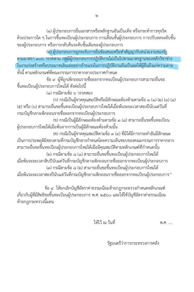 และขอ #ประณาม รัฐบาลอนุทินที่ไม่เร่งลงนาม “กฎกระทรวง ลดชั้นผู้รับเหมา” (ร่างกฎกระทรวง กำหนดหลักเกณฑ์เกี่ยวกับผู้ที่มีสิทธิ์ขอขึ้นทะเบียนผู้ประกอบการ) ทั้งที่ร่างเสร็จแล้ว ซึ่งผมได้อภิปรายเรียกร้องให้ลงนาม ตั้งแต่เดือนกันยายน แต่กลับเพิกเฉยจนยุบสภา (จนทำให้เราไม่สามารถ “ลดชั้น” และ ”ตัดสิทธิประมูลงาน“ บริษัทที่ทำงานประมาท-สับเพร่าได้)