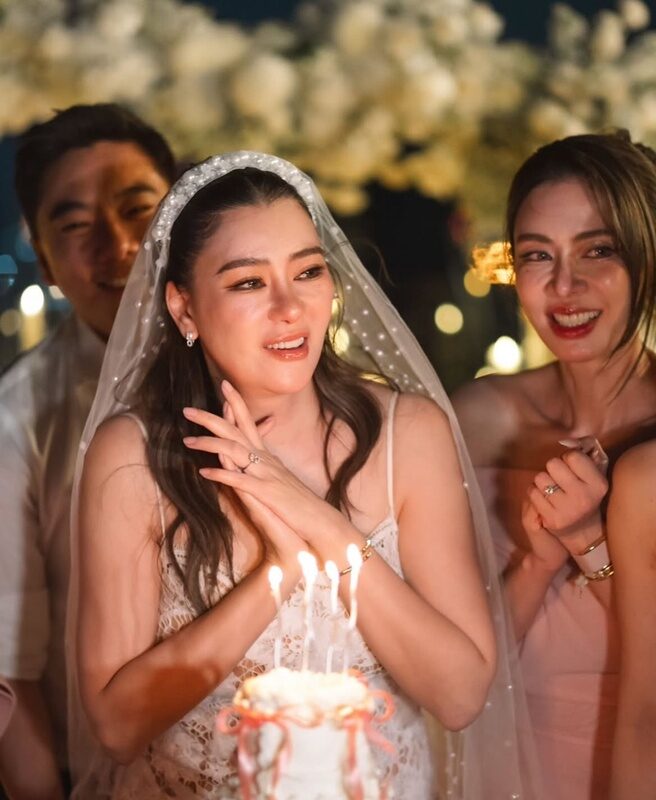 เอ๋ - “จริงๆ เราจะมีกรุ๊ปไลน์แยกออกไปที่ไม่มีพี่โอ๋ แต่พี่โอ๋ก็จะมีความระแคะระคายอยู่บ้าง เบียร์(แฟนโอ๋)นั่นแหละเป็นคนเก็บความลับอะไรไม่อยู่ แล้วก็ไปโป๊ะแตกเอง แต่ว่าพี่โอ๋เขาก็จะมีความเซอร์ไพรส์จริงๆ เพราะเขาไม่รู้ว่าเพื่อนจะจัดให้ขนาดนี้ แล้วคนจะมาเยอะขนาดนี้ มันเป็นโมเมนต์ที่ดีมากเลยนะ ร้องไห้กันทั้งงาน ส่วนถามว่าเบียร์โป๊ะยังไง เขาเอาแหวนแต่งงานไปให้พี่โอ๋ดูอ่ะค่ะ เขาคงเก็บความลับไม่อยู่ไง มันคงแน่นอกมาก พี่โอ๋เขาก็แบบเอ๊ะยังไงนะ แต่เขาก็ไม่คิดไงว่ามันจะขนาดนี้”