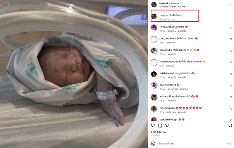 ทั้งนี้ล่าสุดเมื่อวันที่ 24 ม.ค.69 มีเรื่องราวน่ายินดี เมื่อแร็พเปอร์หนุ่มก็โพสต์อยู่ที่โรงพยาบาลเด็กสินแพทย์ พร้อมเผยภาพทารกน้อยแรกเกิด เผยชื่อว่าด.ช.เจเดน