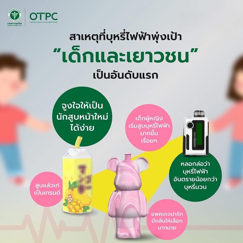 วันที่ 10 มี.ค. 2568 นพ.ทวีชัย วิษณุโยธิน ผู้อำนวยการสำนักงานป้องกันควบคุมโรคที่ 9 นครราชสีมา เปิดเผยว่า ปัญหาการใช้บุหรี่ไฟฟ้าของเด็กและเยาวชนไทยกำลังเพิ่มสูงขึ้นอย่างน่ากังวล โดยจากข่าวในสังคมออนไลน์ที่ปรากฏให้เห็นบ่อยครั้ง ว่าเด็กและเยาวชนหันมาใช้บุหรี่ไฟฟ้ากันมากขึ้น เนื่องจากภาพลักษณ์ภายนอกของบุหรี่ไฟฟ้าที่ผู้ผลิตตั้งใจออกแบบมาให้ดูน่ารัก น่าใช้ และน่าลอง
