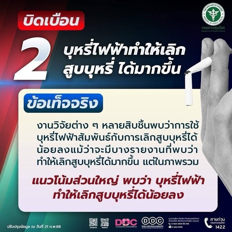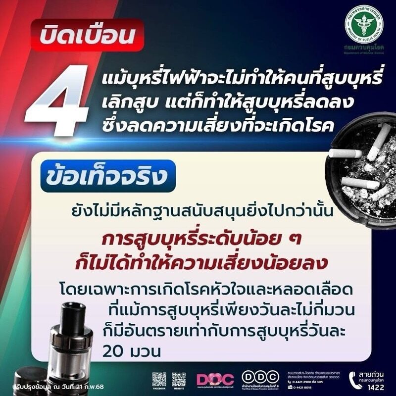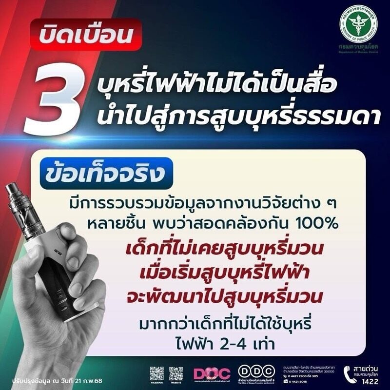 อ่านข่าวต้นฉบับได้ที่ : แพทย์เตือนเยาวชน สูบบุหรี่ไฟฟ้าพุ่ง เสี่ยงปอดทะลุ สารเคมีก่อมะเร็งเพียบ