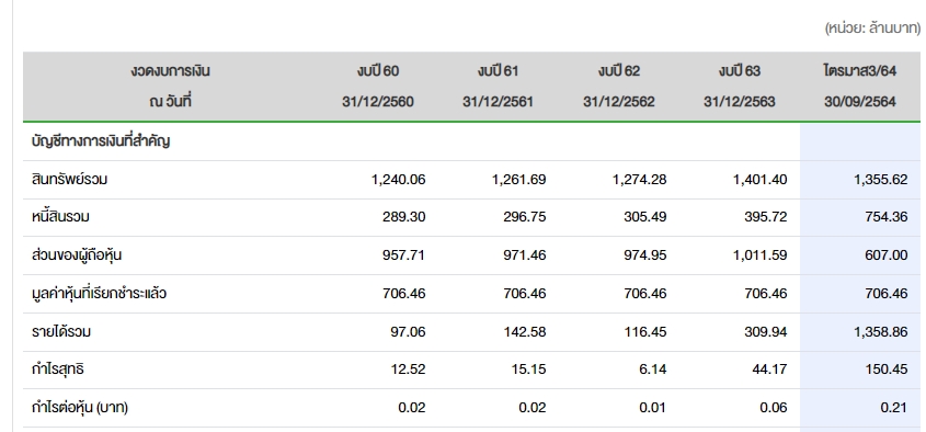 ด้านผลการดำเนินงานงวดไตรมาส 3 มีกำไร 102.90 ล้านบาท เพิ่มขึ้น 849.57% จากช่วงเดียวกันของปีก่อนอยู่ที่ 10.84 บาท และงวด 9 เดือนแรกของปี 2564 มีกำไรสุทธิ 150.45 ล้านบาท เพิ่มขึ้น 434.54% จากช่วงเดียวกันของปีก่อนอยู่ที่ 28.15 ล้านบาท