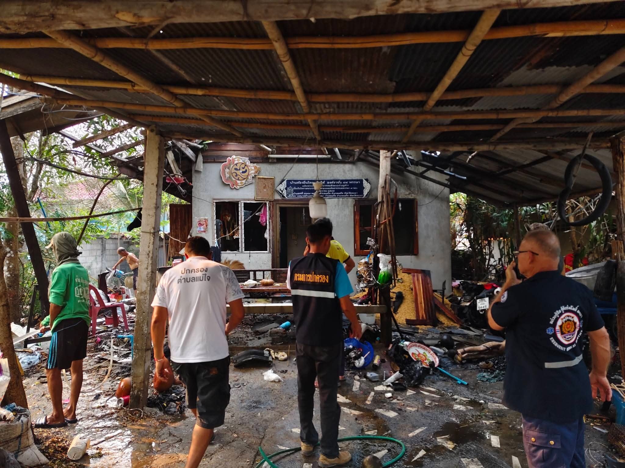 พลุระเบิด บึ้มสนั่นกลางชุมชน หลังคาบ้านกระจุย เจ็บ 2 ราย ถูกไฟไหม้ตามร่างกาย พบมีอาชีพรับจ้างทำพลุ จนท.ระดมฉีดน้ำควบคุมเพลิง
