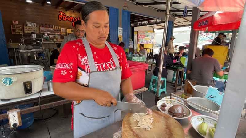นางปาริชาติ มีพักตร อายุ 45 ปี เจ้าของร้าน กล่าวว่า ช่วงนี้ต้นทุนสูงขึ้นมาก ร้านเองก็สู้ราคาไม่ไหว ปกติขาย 2 อย่าง ก๋วยเตี๋ยวไก่และข้าวมันไก่ ตอนนี้ต้นทุนสูงมากสู้ไม่ไหวเลยขายแต่ข้าวมันไก่ ทางร้านได้แจ้งปรับราคาขึ้นเมนูละ 5 บาท ต้นทุนที่เพิ่มมีไก่สด กก.ละ 90 บาท ปรับขึ้นมาจาก กก.ละ 80 บาท ข้าวสารก็เริ่มปรับราคาขึ้นมาสักพักแล้ว ทำให้ร้าติดป้ายรวยไม่ไหวแล้ว ซึ่งคนที่รวยไม่ใช่ประชาชนอย่างเราแน่นอน
