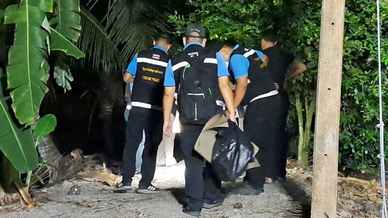 ที่เกิดเหตุพบชายเจ้าของบ้าน อายุ 42 ปี รออยู่พร้อมอาวุธปืนขนาด 9 ม.ม. ส่วนบริเวณร่องสวนหลังบ้านพบศพ ชายอายุประมาณ 25 ปี ในตัวไม่พบเอกสารใดๆ สวมเสื้อยืดสีน้ำเงิน กางเกงขายาวสีดำ สวมรองเท้าผ้าใบสีดำ มีบาดแผลกระสุนปืนยิงเข้าหน้าท้อง 1 นัด ก้น 1 นัด และที่ขาซ้าย 1 นัด