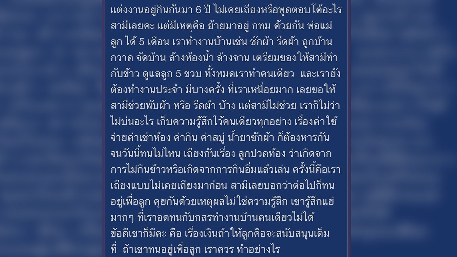 ภรรยาสุดช้ำ โดนสามีด่าว่า "กระจอก" หลังทำงานบ้านคนเดียวไม่ได้ เหนื่อยกายเหนื่อยใจ ที่ผ่านมาต้องดูแลลูก-ทำงานประจำ ทำไมสามีไม่เข้าใจ