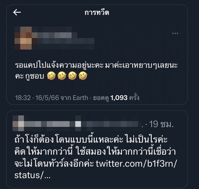 คยเรากล้าทำต้องกล้ารับนะคะ อย่าด่าคนอื่นแล้วไม่กล้ายอมรับ ไม่กล้าแม้แต่จะขอโทษ แต่เลือกที่จะหนี …. แต่ไม่เป็นไรค่ะ เฟิร์นพอจะเดาได้ว่าจะเป็นแบบนี้ เมื่อคืนเฟิร์นเลยใช้เวลาในการหาตัวตนและแคปหลักฐานครบหมดแล้ว ต่อให้ระเบิดแอคเคาท์ทิ้งไปเลย ก็ไม่ทันแล้วค่ะ pic.twitter.com/RpAZDb5GBn