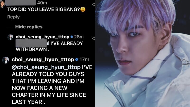 ต่อมาได้แชร์โพสต์ของตัวเองที่กำลังเล่นคีย์บอร์ด เพื่อให้แฟนๆ รู้ว่าเขากำลังกำลังทำอัลบั้มอยู่ ทั้งนี้ มีแฟนคนหนึ่งแสดงความคิดเห็นในโพสต์นี้ถามท็อปว่าเขาออกจากกลุ่มหรือไม่ และศิลปินตอบกลับโดยบอกว่าเขาออกจากวง BIGBANG แล้ว “ผมบอกพวกคุณไปแล้วว่า ผมถอนตัวจากวง และตอนนี้กำลังเผชิญกับบทใหม่ในชีวิตตั้งแต่ปีที่แล้ว” พร้อมบอกว่าตัวเองจะกลับมาในฐานะนักร้องเดี่ยว