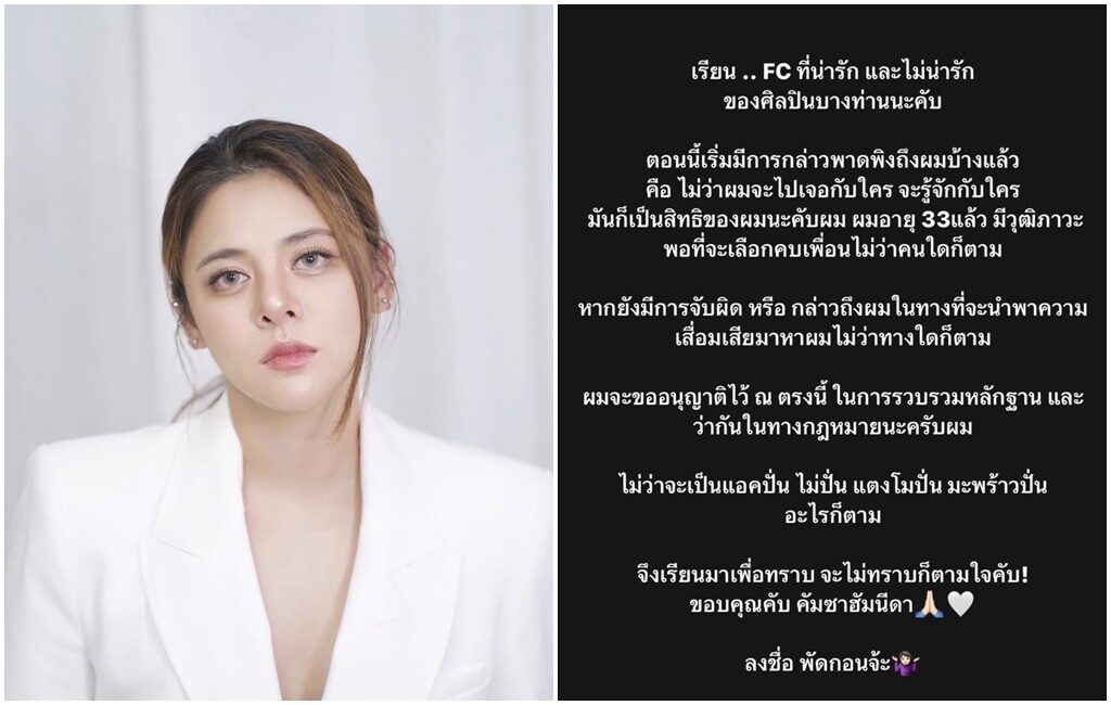 ใบเฟิร์น พัสกร ฟาดเดือดถึง FC ศิลปินบางท่านที่ไม่น่ารัก ลั่นอายุ 33 มีวุฒิภาวะมากพอ เลือกคบเพื่อน ถ้ายังจับผิด กล่าวหาเสื่อมเสีย จ่อดำเนินคดี