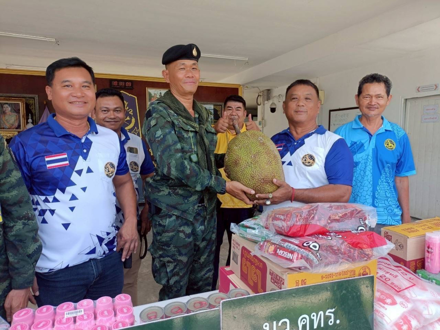 นายสิน ไม้เทศ ผู้ใหญ่บ้านหมู่ 7 บ้านวังไทร เปิดเผยว่า การสนับสนุนในครั้งนี้เกิดจากความร่วมมืออย่างดีของประชาชนในพื้นที่ โดยเฉพาะ “แผงขนุนเจ๊มุ้ย” ที่มอบขนุนสามร้อยยอด มากถึง 5 ตัน นอกจากนี้ยังมีข้าวสาร อาหารแห้ง และสิ่งของจำเป็นจำนวนมาก รวมทั้งยางรถยนต์เก่าสำหรับทำบังเกอร์ ที่นำไปมอบแก่ทหารในพื้นที่ชายแดน