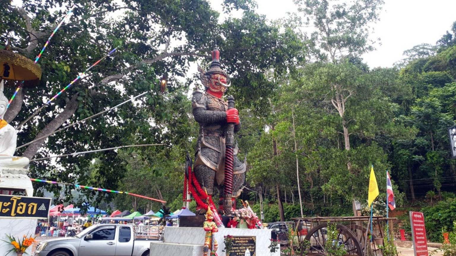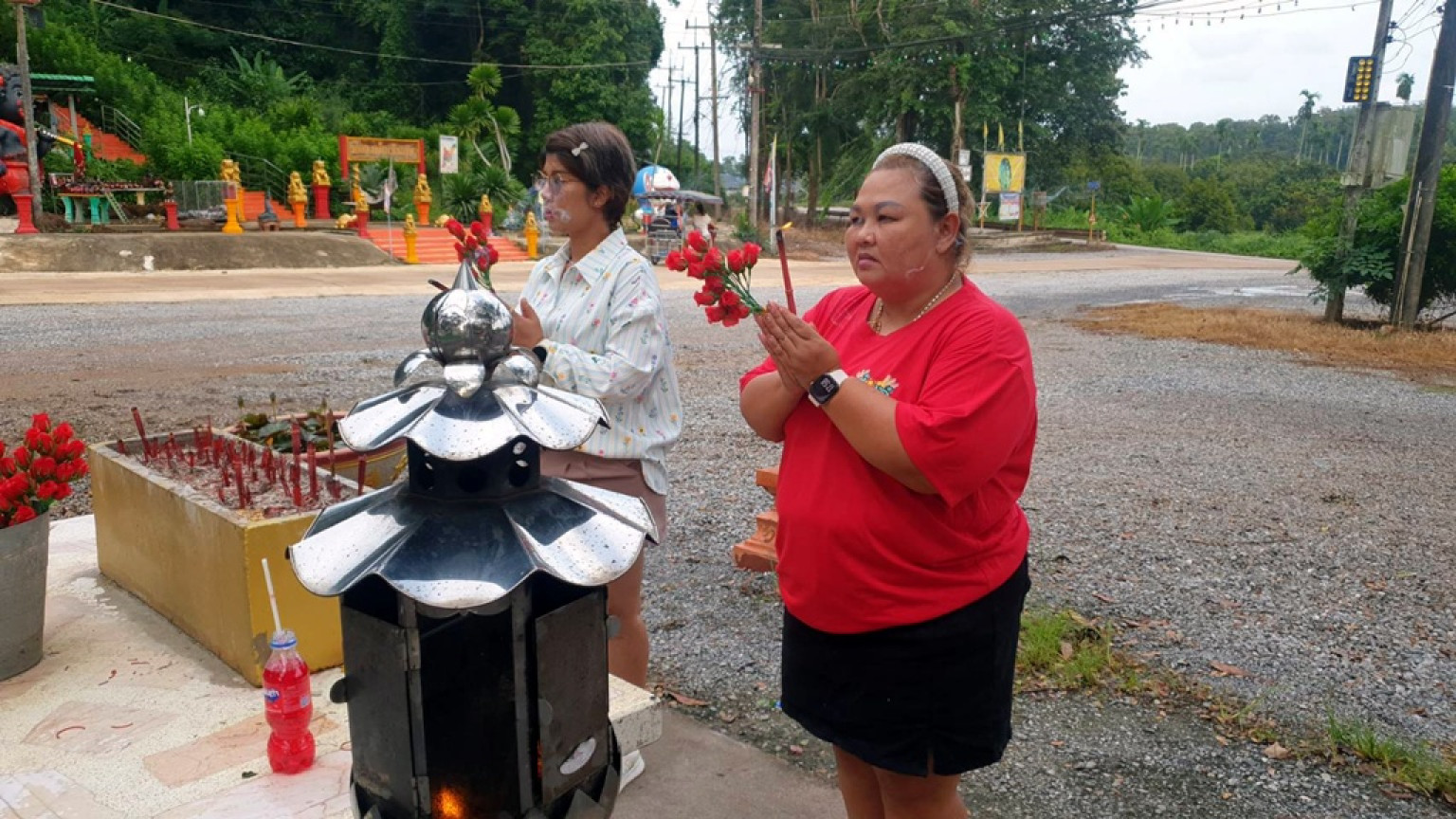 ขณะเดียวกัน นางตุ้ม อายุ 69 ปี ชาว จ.ระยอง ก็ไม่ยอมน้อยหน้า เล่าว่าตนเองก็เคยมาขอพรเรื่องการขายที่ดินในพื้นที่ชุมชนคลองแดง ต.พะว้า อ.แก่งหางแมว จ.จันทบุรี จำนวน 6 ไร่ ปรากฏว่าไม่นานก็ขายได้ในราคาดีถึงไร่ละ 860,000 บาท รับเงินมากกว่า 5 ล้านบาท จึงจัดหนังกลางแปลงมาฉายแก้บนในวันนี้เช่นกัน
