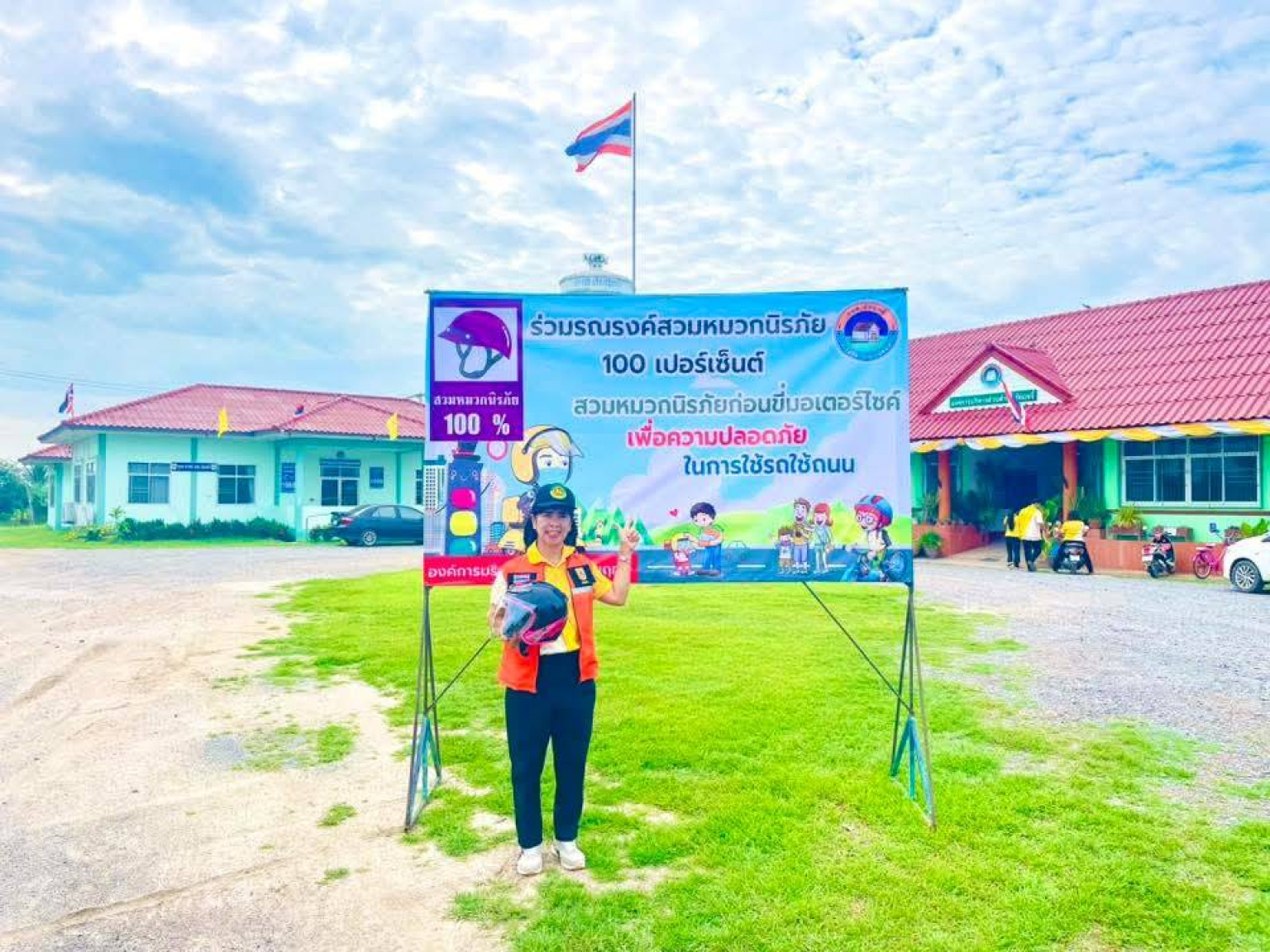 อบต.ชัยฤทธิ์ขับเคลื่อนมาตรการความปลอดภัยทางถนน สวมหมวกนิรภัย 100%