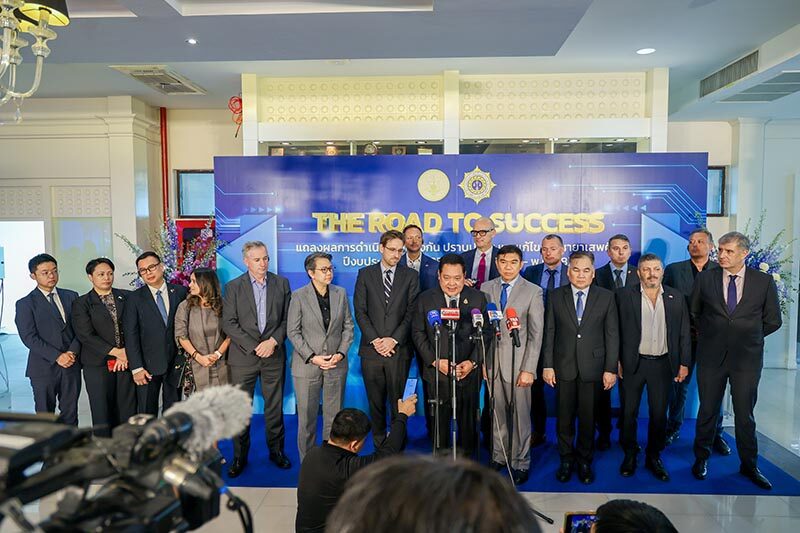 ด้าน พล.ต.ท.ภาณุรัตน์ กล่าวว่า ผลการดำเนินงานประเด็นสำคัญใน 5 มาตรการแนวโน้มการแพร่ระบาดของยาเสพติดในประเทศไทยลดลง หากดูจากจำนวนคนไทยในปัจจุบัน 64 ล้านคน ซึ่งลดลงทุกปี และเมื่อมีนักวิชาการดำเนินการวิจัย รวบรวมข้อมูล มีการไปสุ่มถามกลุ่มคนที่ใช้ยาเสพติด ว่าในจำนวน 30 วัน มีคนใช้ยาเสพติดกี่ราย และในจำนวน 20-30 วันมีกี่ราย