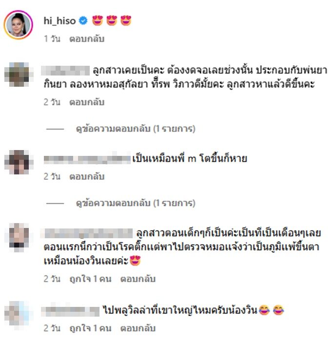 โดยแฟนๆเข้ามาส่งกำลังใจ ให้น้องวินหายไวๆ ด้วย รวมทั้งแม่ๆ หลายคนก็บอกว่าลูกก็เป็นเหมือนกัน พร้อมแชร์ประสบการณ์ด้วย อาทิ