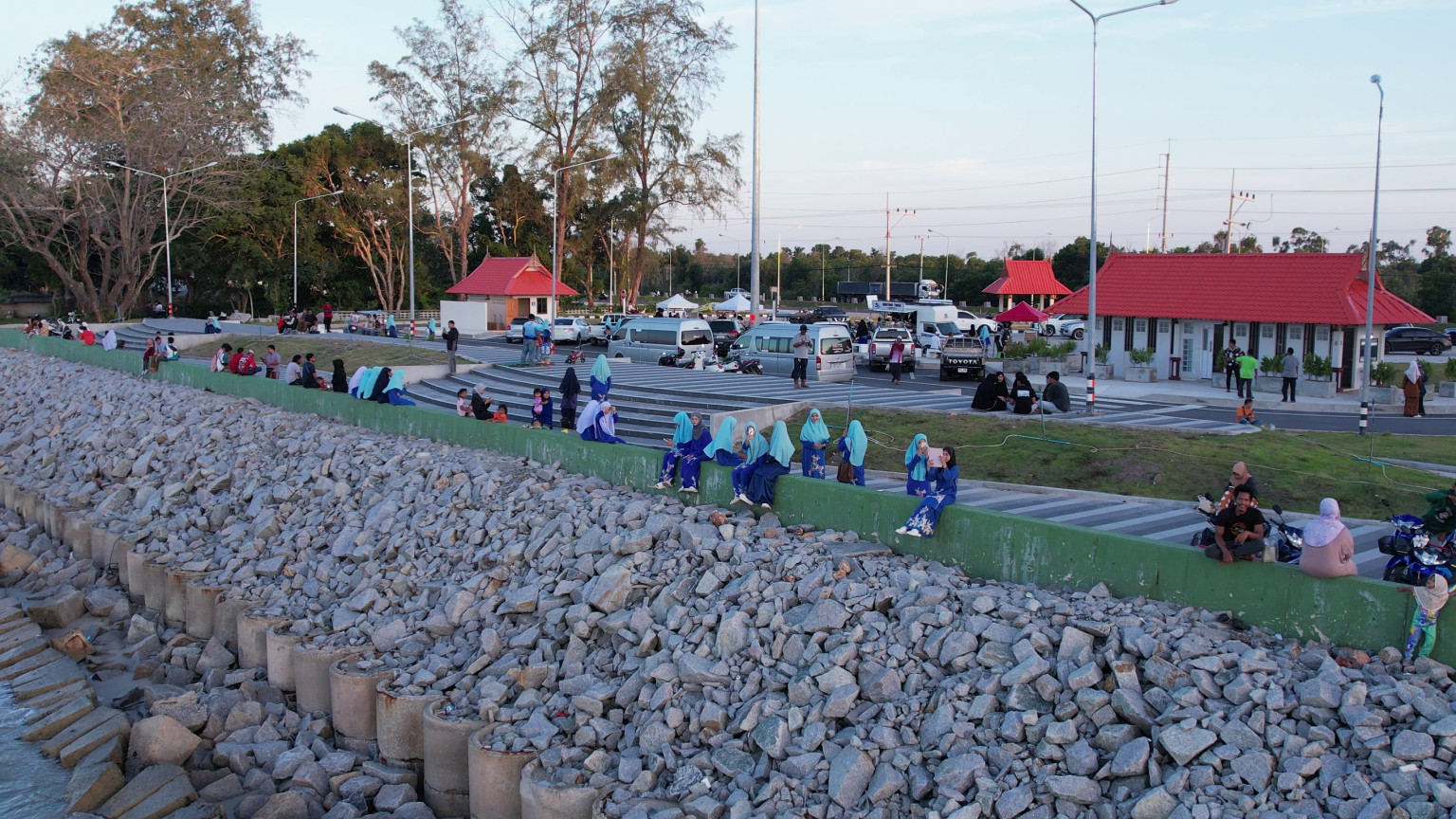 ทันทีที่คุณขับรถเข้ามา คุณจะสัมผัสได้ถึงความกว้างขวาง โล่งโปร่ง และความร่มรื่นจากแนวต้นไม้ที่โอบล้อม พร้อมวิวผืนน้ำทะเลสาบกว้างใหญ่สุดสายตา ถือเป็นจุดแวะพัก "วิวหลักล้าน" อีกทั้งการออกแบบก่อสร้างบันไดริมทะเลที่สามารถป้องกันการกัดเซาะชายฝั่งทะเลแล้ว ยังเป็นที่นั่งพักผ่อนชมวิว หรือถ่ายภาพความประทับใจ โดยเฉพาะช่วงเช้าและยามเย็น บรรยากาศจะงดงามเป็นพิเศษ พร้อมกับสิ่งอำนวยความสะดวกที่ตอบโจทย์ในด้านการบริหารพื้นที่และการใช้ประโยชน์ ได้แก่