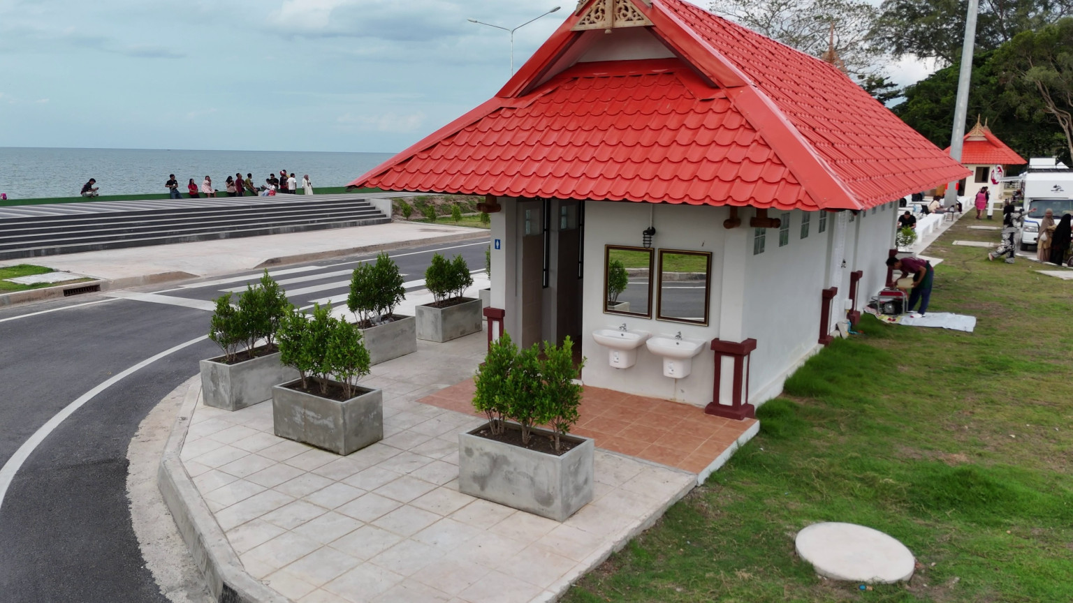 -พื้นที่สำหรับพักผ่อน: มีม้านั่งและศาลาพักผ่อนที่ออกแบบสวยงาม กลมกลืนกับธรรมชาติ ให้คุณได้นั่งพักอ่านหนังสือ หรือเพลิดเพลินกับบรรยากาศ และพื้นที่สำหรับออกกำลังกาย ยืดเส้นยืดสายหลังจากขับรถนานๆ หรือปั่นจักรยานรับลมทะเล