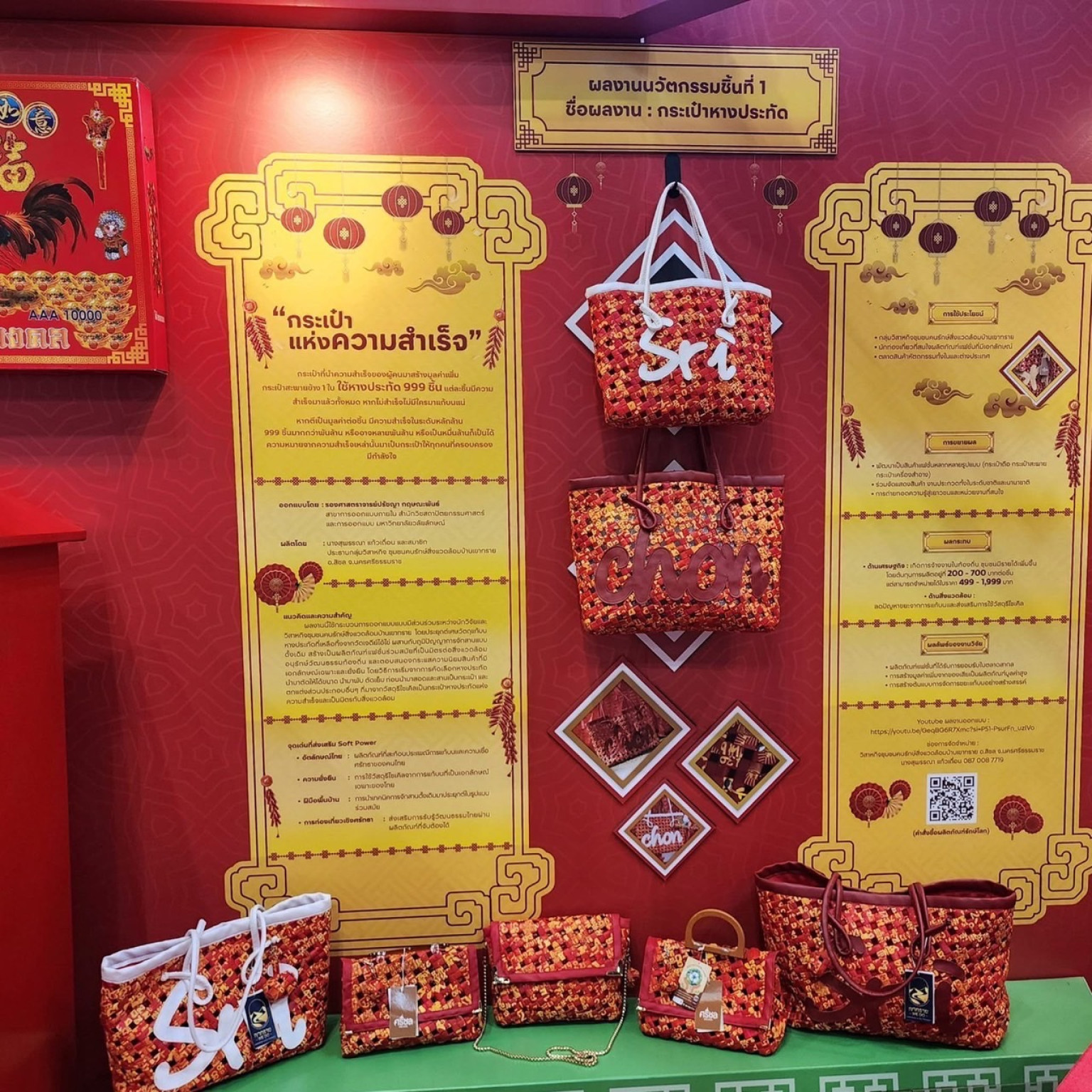 รศ.ดร.ศิวฤทธิ์ กล่าวว่า 3 นวัตกรรมจากความเชื่อสู่การรักษ์โลก ดังกล่าวประกอบด้วย 1) "กระเป๋าหางประทัด" แปรรูปหางประทัด 999 ชิ้นต่อกระเป๋า 1 ใบ ผสานเทคนิคจักสานดั้งเดิมเป็นแฟชั่นร่วมสมัย 2)"อิฐต่อ ก่อบุญ" ซึ่งนำเศษประทัดและไก่ปูนปั้นมาผลิตอิฐก่อสร้างคุณภาพสูง และ 3) "Art Toy ไก่ศรัทธา"แปรรูปเศษไก่ปูนปั้นเป็นตัวการ์ตูน "น้องร่ำรวย น้องร่ายรำ และน้องร่าเริง" ที่ผสมผสานศิลปะโนราห์และวัฒนธรรมไทย-จีน