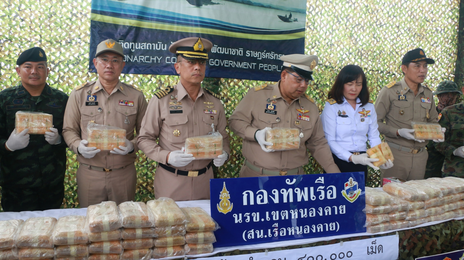 ผู้ว่าฯ หนองคาย แถลงข่าวตรวจยึดยาบ้า กว่า 400,000 เม็ด ที่พยายามลักลอบนำเข้าจากประเทศเพื่อนบ้าน