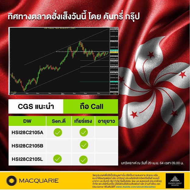 วิเคราะห์ตลาดฮั่งเส็งวันนี้ โดย บริษัทหลักทรัพย์ คันทรี่ กรุ๊ป
