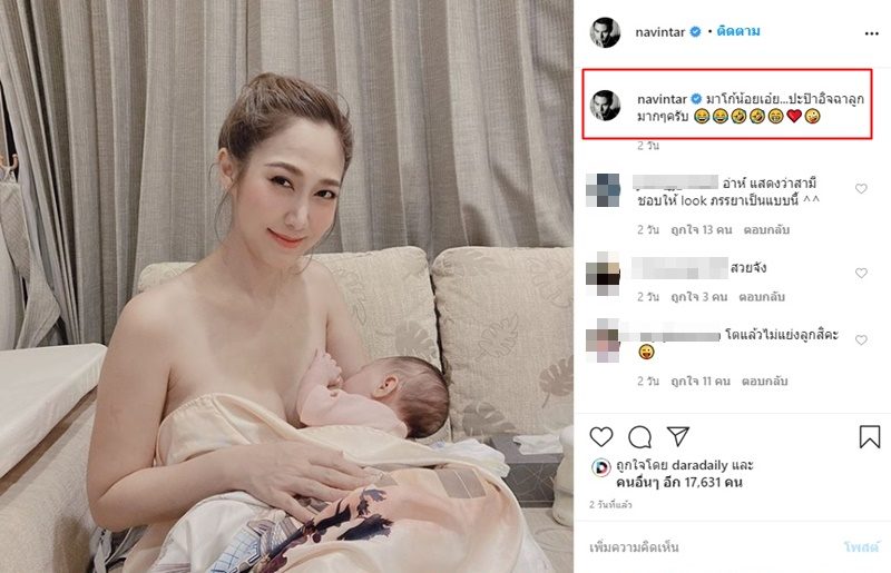 นาวิน ต้าร์ โพสต์ภาพภรรยา ให้นมลูกน้อยจากอก แคปชั่นทำคนแห่คอมเมนต์