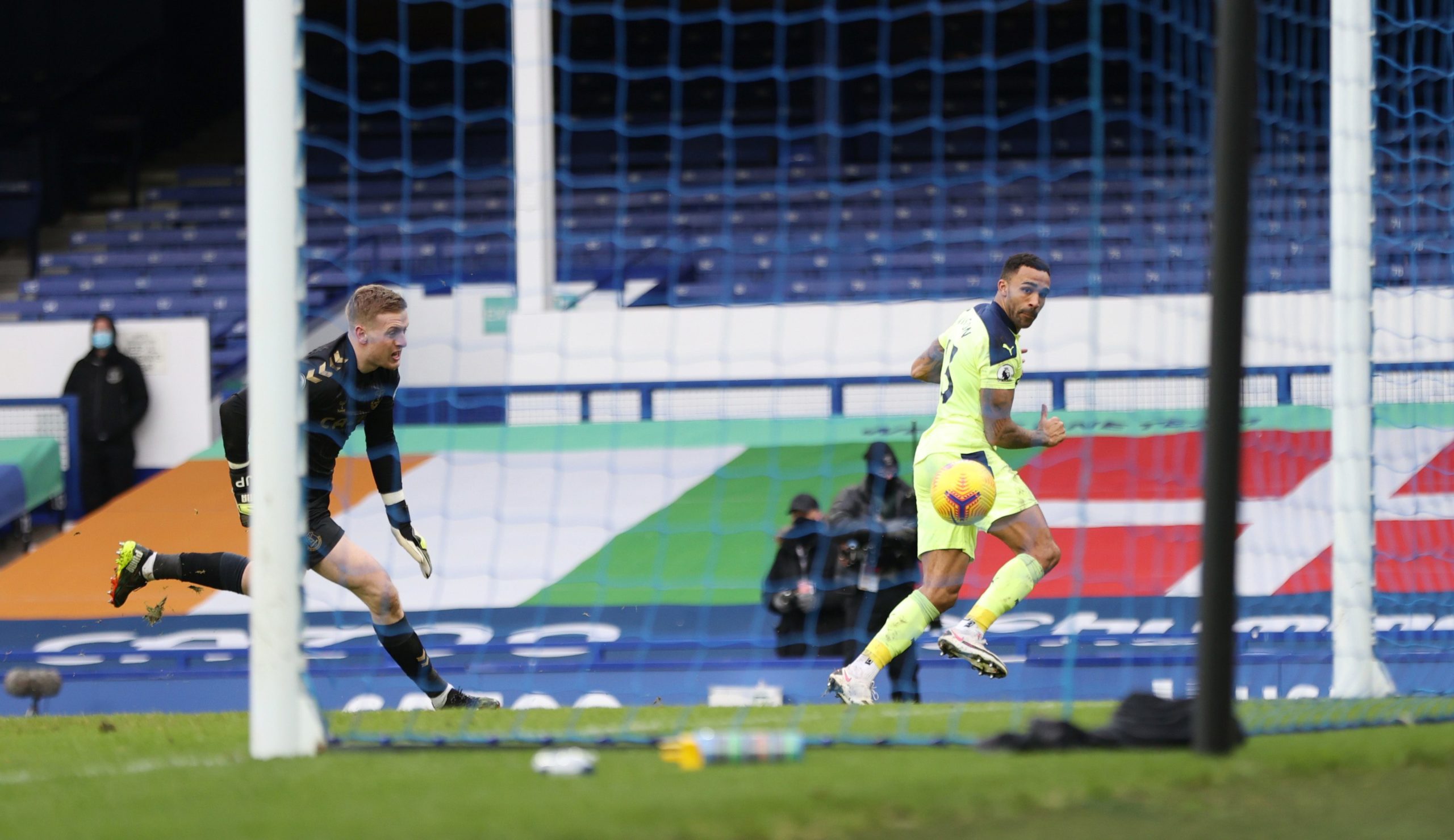 Soccer Football - Premier League - Everton v Newcastle United - Goodison Park, Liverpool, Britain - January 30, 2021 Newcastle United's Callum Wilson scores their first goal Pool via REUTERS/Clive Brunskill EDITORIAL USE ONLY. No use with unauthorized audio, video, data, fixture lists, club/league logos or 'live' services. Online in-match use limited to 75 images, no video emulation. No use in betting, games or single club /league/player publications. Please contact your account representative for further details.