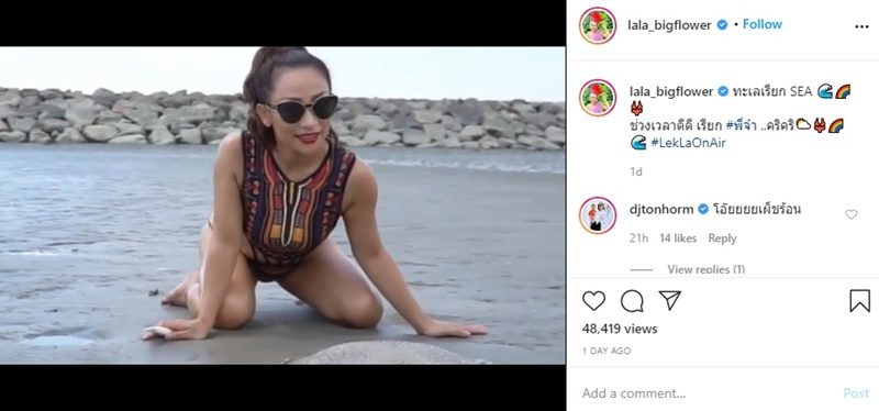 แถมโพสต์คลิปแซ่บร้อนริมทะเล พร้อมแคปชั่นว่า “ทะเลเรียก SEA ช่วงเวลาดีดี เรียก #พี่จ๋า ..คริคริ #LekLaOnAir”