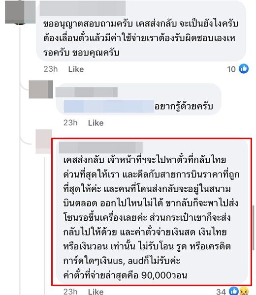 นอกจากนี้ เธอก็ได้มาอธิบายเพิ่มเติม ถึงเคสส่งตัวกลับนั้น เราต้องเป็นคนรับผิดชอบ และจ่ายเงินสดค่าตั๋วเท่านั้น