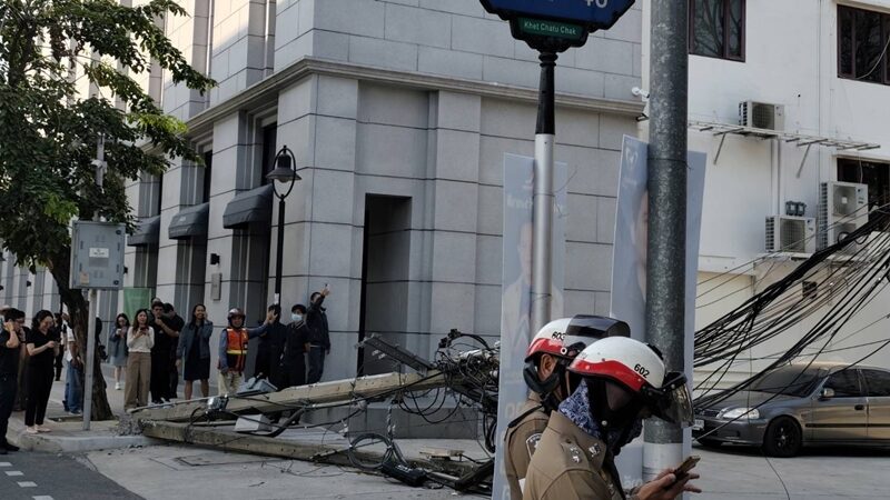 ระทึก ใกล้พรรคภูมิใจไทย รถโม่ปูน เลี้ยวไม้พ้น เกี่ยวสายไฟฟ้าขาด เสาไฟฟ้าหักโค่น 8 ต้น ตกใส่คนเดินเท้าเจ็บ 1 ราย ไฟดับพรึ่บทั้งซอย เจ้าหน้าที่เร่งตรวจสอบ