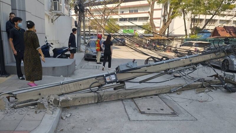 จากการตรวจสอบเบื้องต้นพบว่า เสาไฟฟ้าหักโค่น 7-8 ต้นพังเสียหาย มีผู้บาดเจ็บเป็นชาย 1 ราย ซึ่งเป็นผู้ใช้ทางเท้าบริเวณดังกล่าว เจ้าหน้าที่เร่งช่วยเหลือนำส่งโรงพยาบาลเปาโลเกษตร