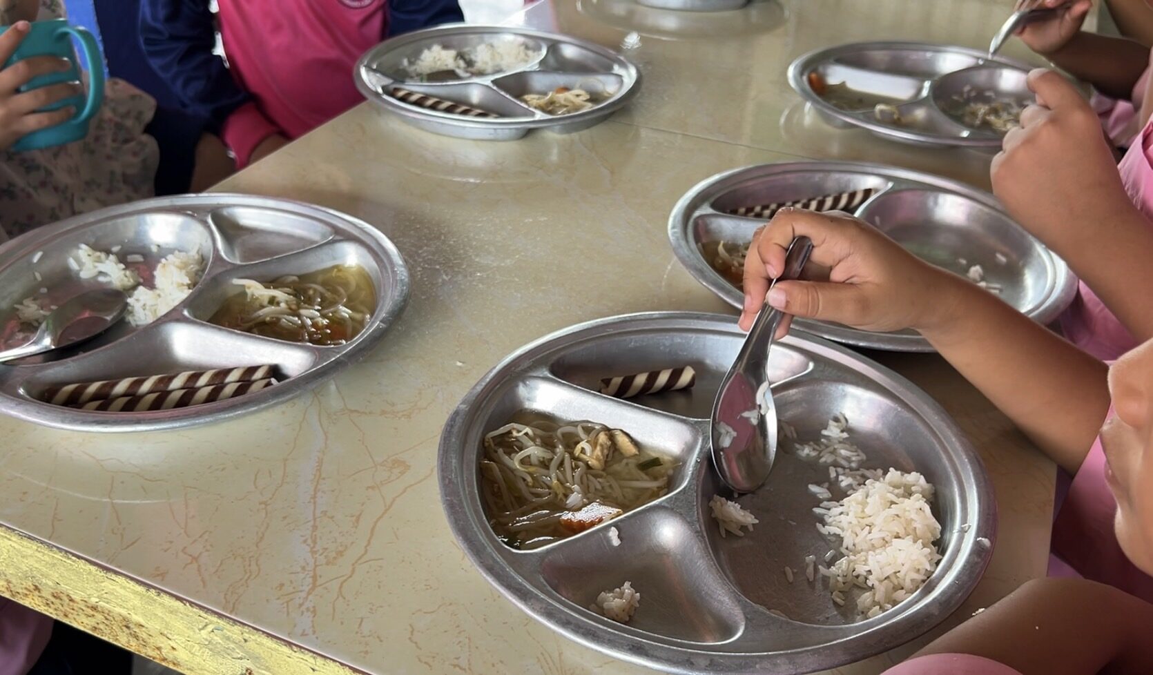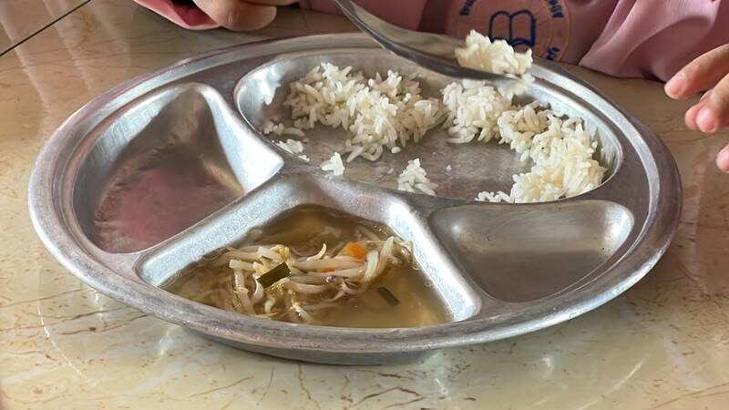 จากนั้นได้ลงสุ่มตรวจสอบอาหารกลางวันนักเรียนระดับชั้นอนุบาล หรือปฐมวัย และประถมศึกษาของโรงเรียนรวมแล้วจำนวน 132 คน ที่ทางภาครัฐได้ให้เงินอุดหนุนเป็นค่าอาหารกลางวันอยู่ที่หัวหรือรายละ 22 บาทต่อวันนั้น