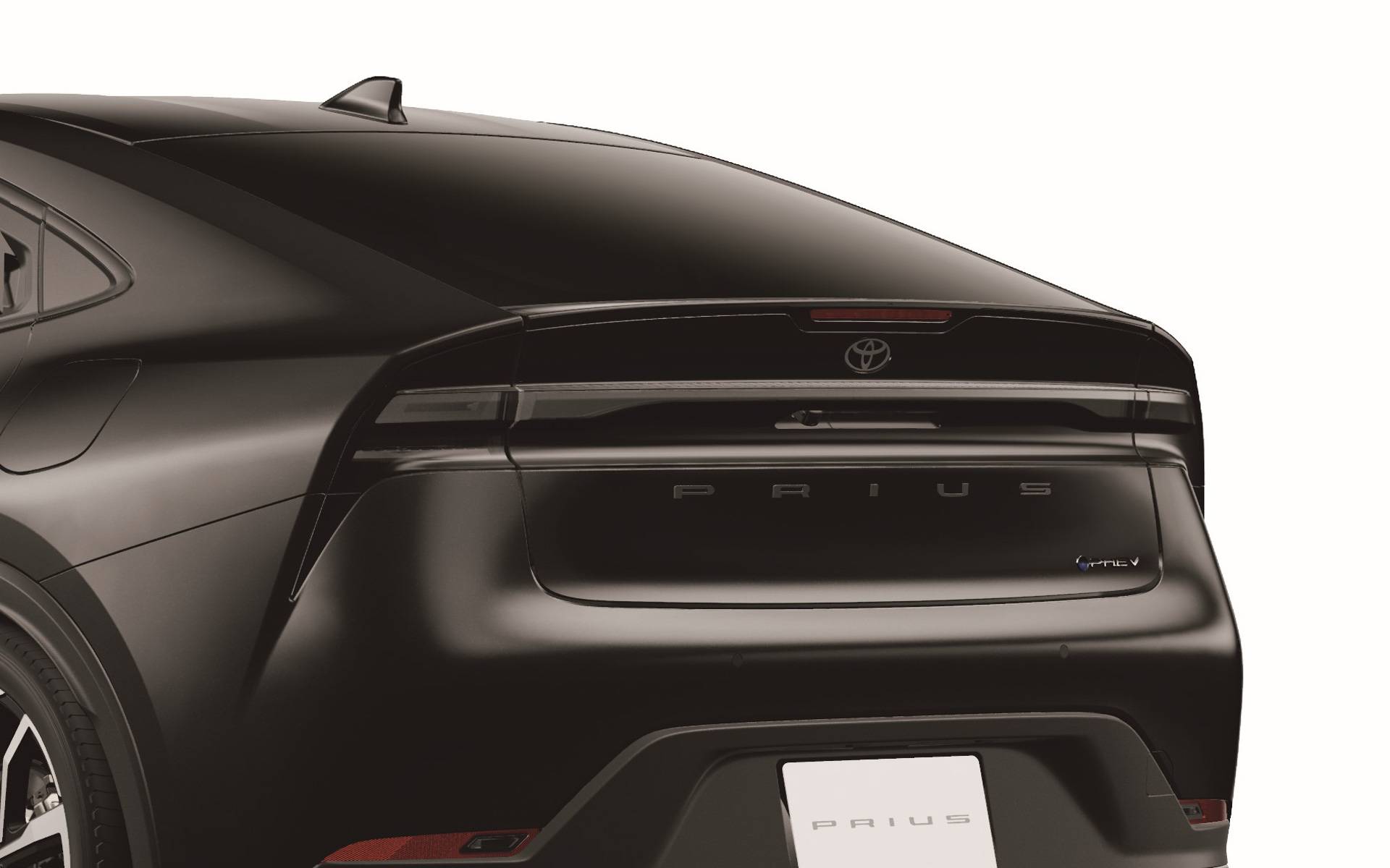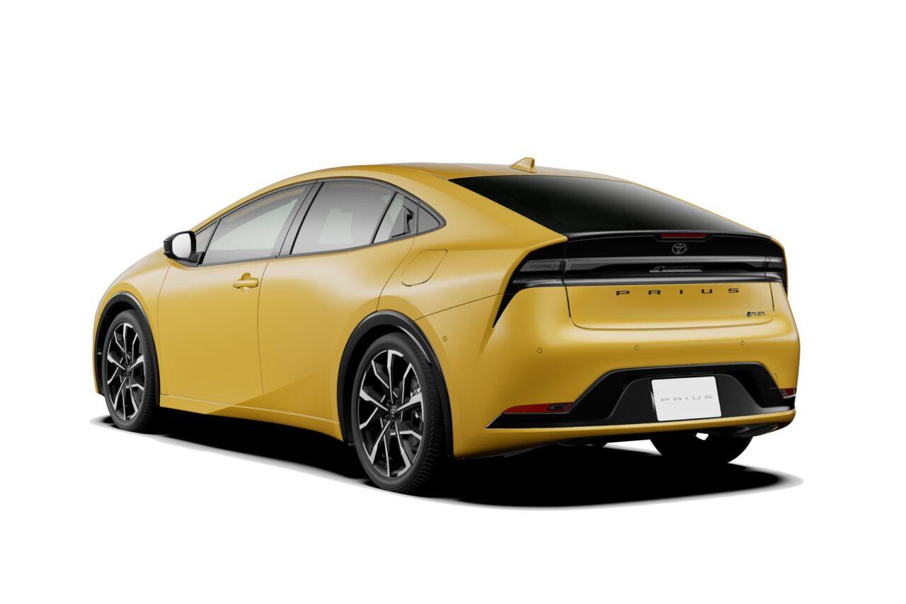ด้านหลังมาในแบบไฟท้าย LED พาดเต็ม รูปตัว A โดยไส้ในของชุดไฟท้ายออกแบบมาเป็นแนวเรียวยาว พร้อมตราชื่อรุ่น Prius ติดเว้นช่องไฟดูสวยงามขึ้น รับกับชุดกันชนท้ายตกแต่งกรอบป้ายทะเบียนสีดำตัวใหญ่แบบด้าน ล้ออัลลอยขนาดใหญ่ขึ้นเป็น 19 นิ้ว พร้อมยาง Bridgestone ECOPIA EP510 195/50R19 แน่นอนว่าใช้พื้นฐาน TNGA GA-C หรือ Toyota New Global Architecture เจเนอเรชันที่สอง โดยตัวรถใหญ่ขึ้นตั้งแต่