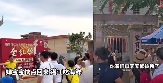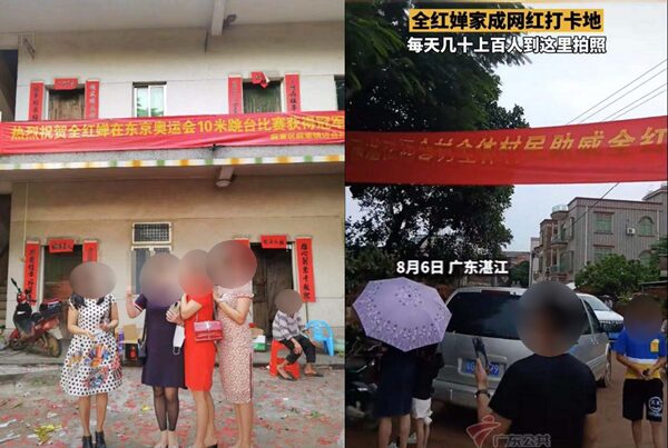 จนในเวลาต่อมา จากกระแสความโด่งดัง ทำให้มีชาวจีนจำนวนมาก เดินทางไปยังบ้านของเธอที่หมู่บ้านหมายเหอ, ตำบลม่าจาง เมืองจ้านเจียง ทางตะวันตกเฉียงใต้ของมณฑลกวางตุ้ง เพื่อแสดงความยินดีและแห่เช็กอิน ขณะบางคนก็ตั้งกล้อง ไลฟ์รายงานสด พร้อมอุปกรณ์จัดเต็มที่นี่ล้นหลาม